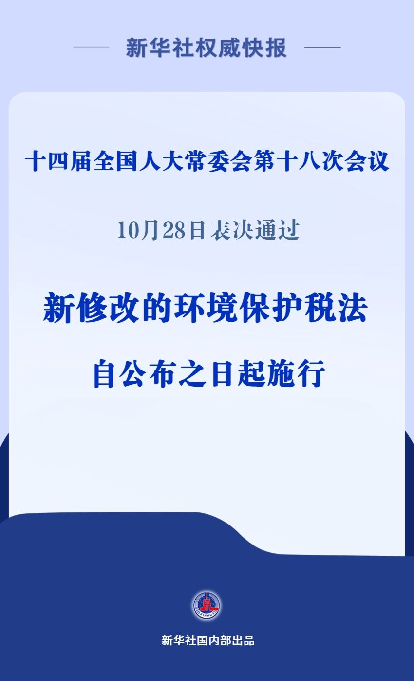 十四届全国人大常委会第十八次会议10月28日表决通过关于修改环境保护税法的决定威贤配资,并自公布之日起施行。